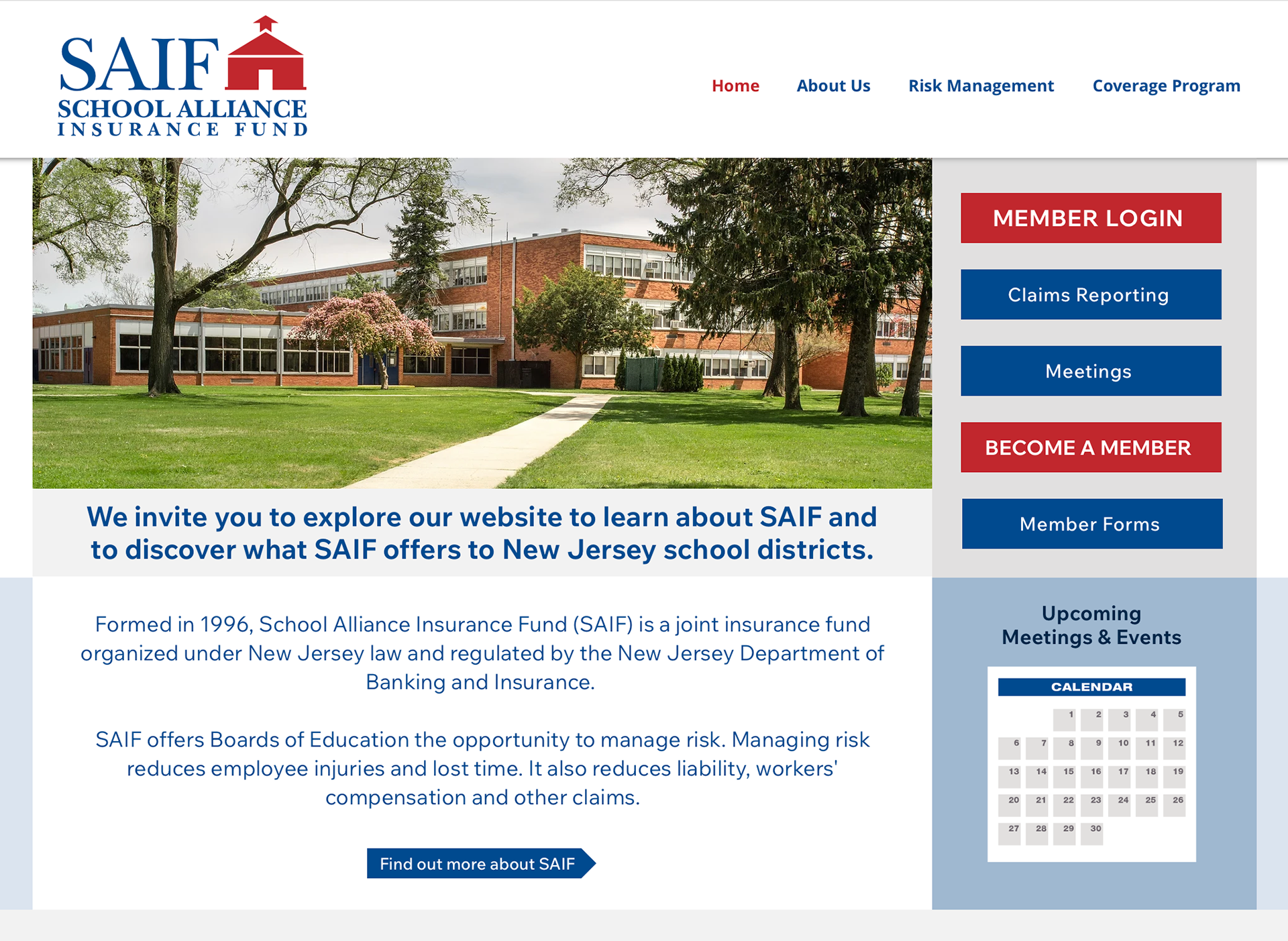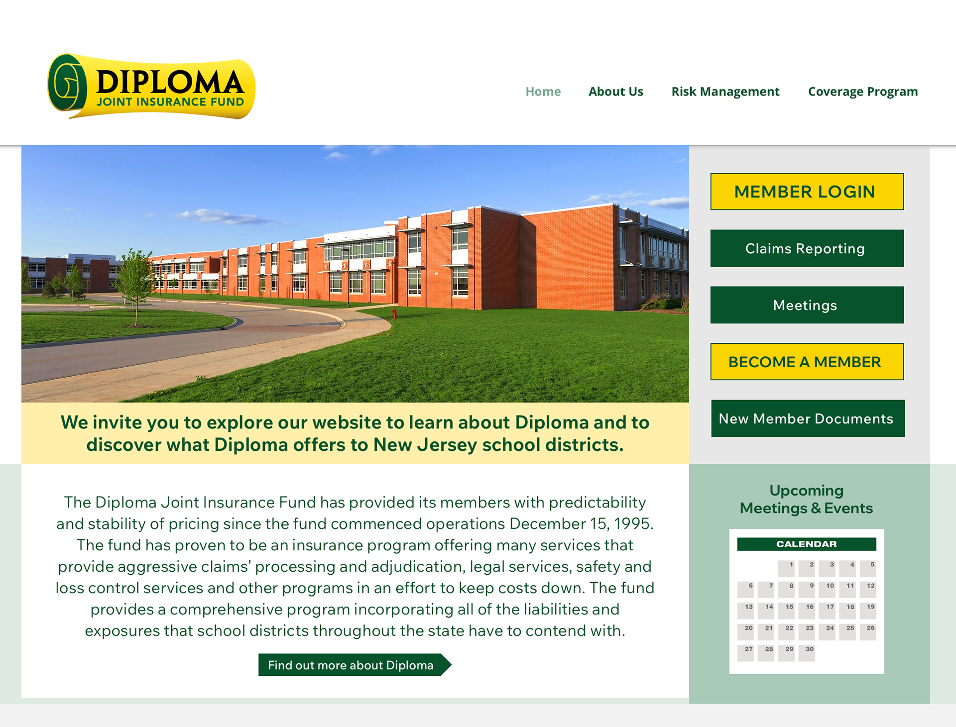 Six websites designed for a single client that manages joint insurance funds. Client requested that all be designed using the same template, include a calendar feature and member login. Sites also include several pages that only members can access. Click image to visit sites.
